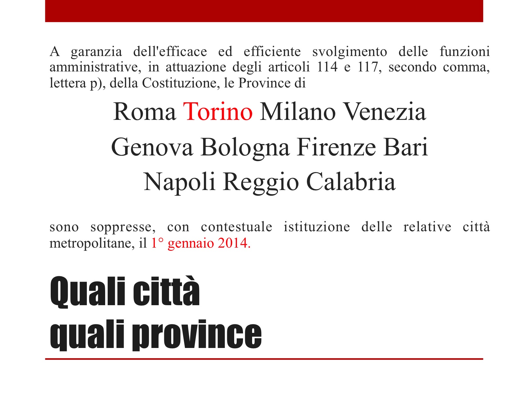 Ci stiamo arrivando alla città metropolitana, come non è ancora chiaro. Nel caso di Torino, in molta sintesi, si tratta di una sostituzione della provincia con un po’ di democrazia in meno e, prevedo, un po’ di litigiosità in più.