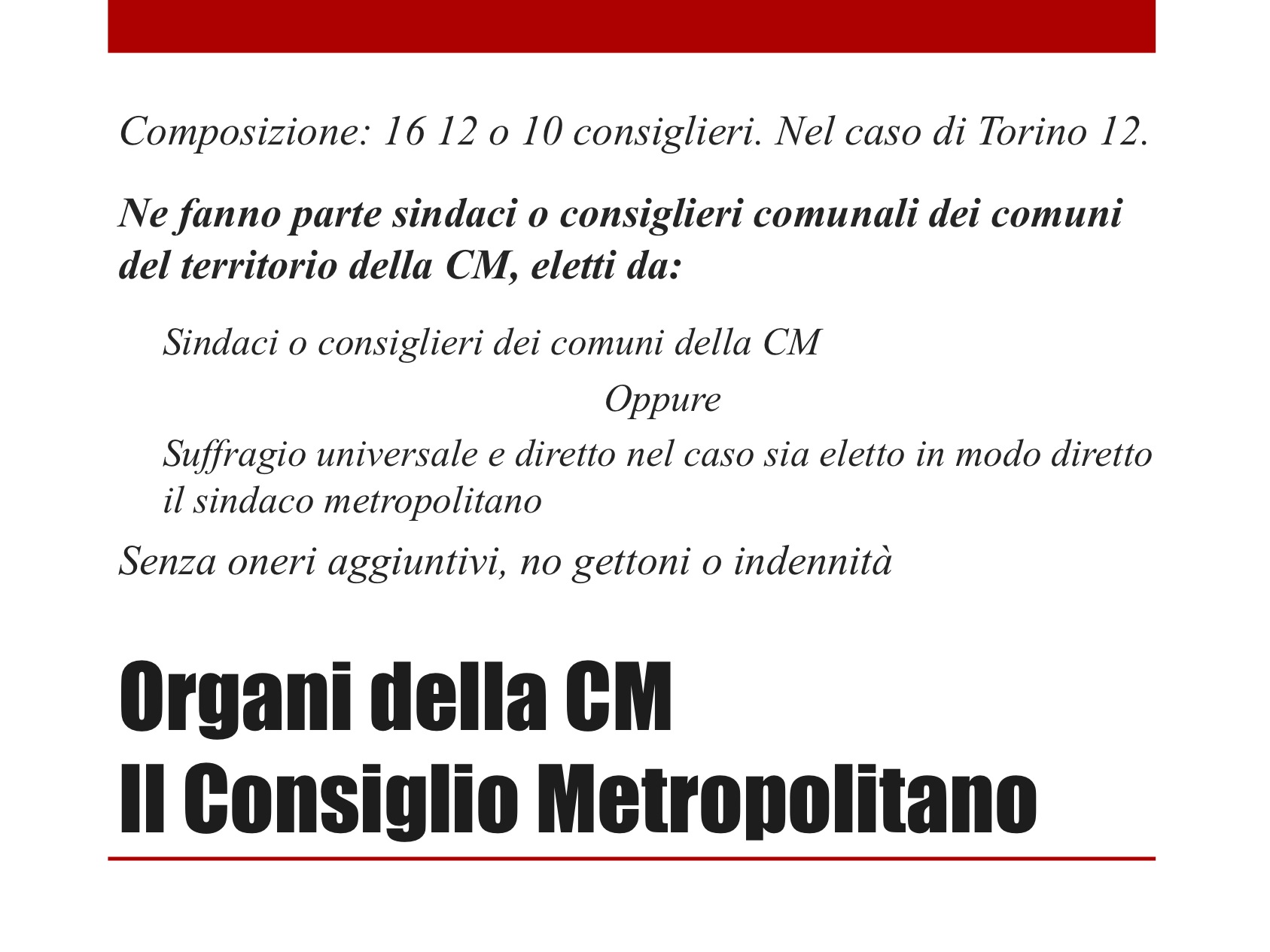 Avevo elaborato queste slide per comprendere meglio la cosa, le metto a disposizione. Se riscontraste qualche incongruenza segnalatela. Come la penso? In sintesi: il sindaco della città metropolitana dovrebbe essere eletto e rappresentare una coalizione politica e non un “accordo tra sindaci”; il comune di Torino dovrebbe fare un passo indietro organizzandosi in municipi; dovrebbe esserci una giunta e non un consiglio dei sindaci. In sintesi, ripeto, molta sintesi.