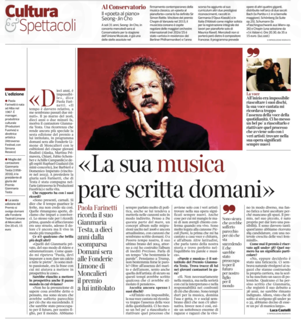 Mi permetto di disturbare per inviarLe un promemoria: il prossimo 30 marzo saranno trascorsi dieci anni dalla scomparsa di Gianmaria Testa.