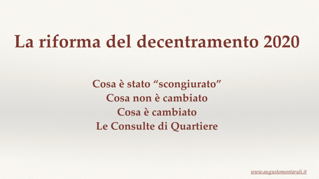 Decentramento, la riforma e la controriforma